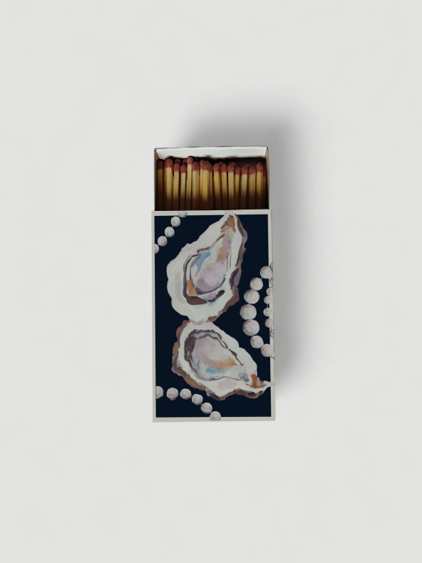 Fin aks med tändstickor. Dessa med motivet Ostron.